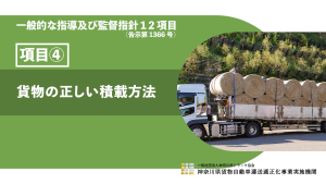 この教育動画は、一般的な指導及び監督指針12項目(国交省告示第1366号)の中の項目④「貨物の正しい積載方法」です。